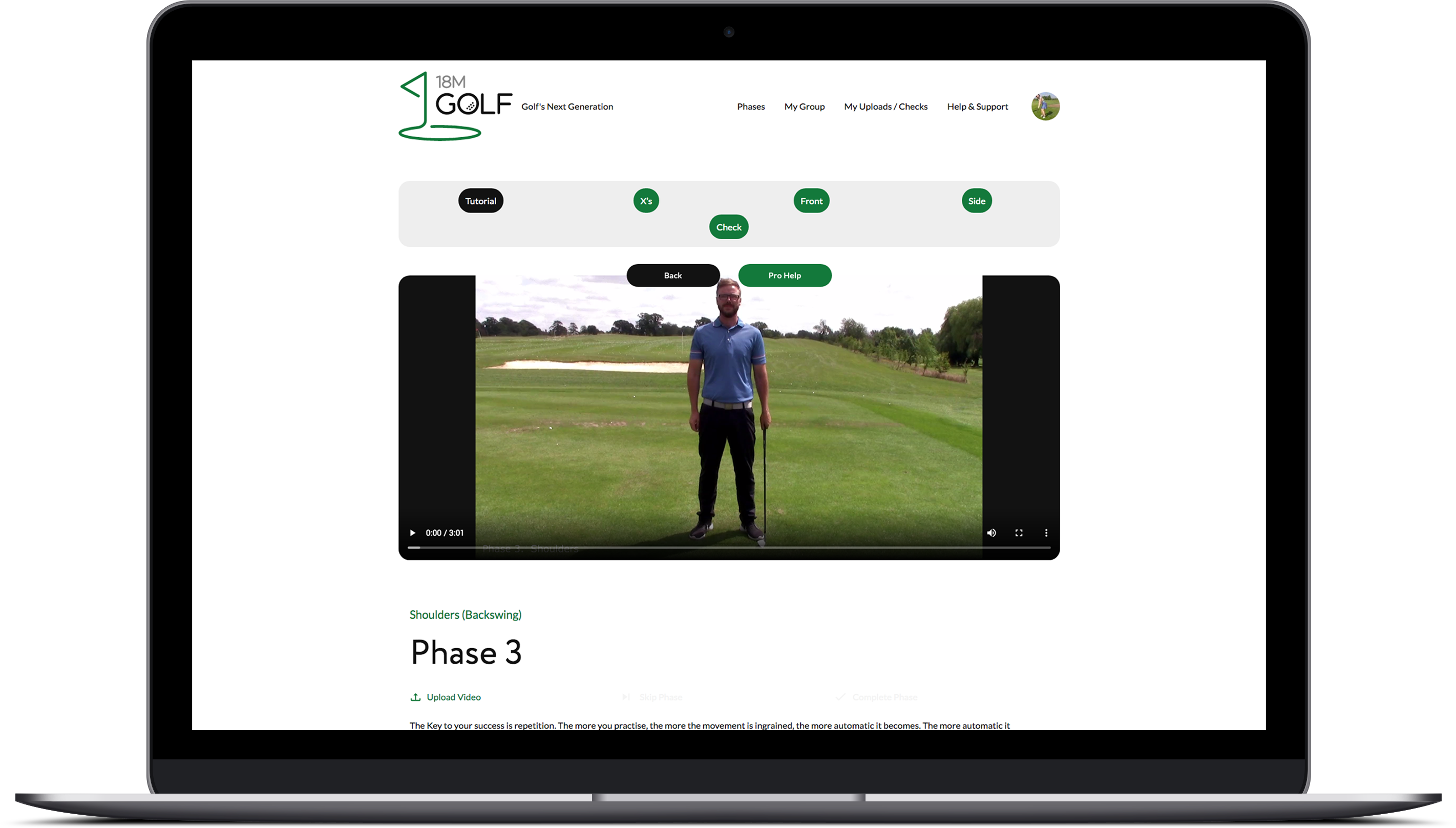Each lesson (2 to 6 minutes in length) has a goal which is analysed with specific feedback in the app’s swing studio.